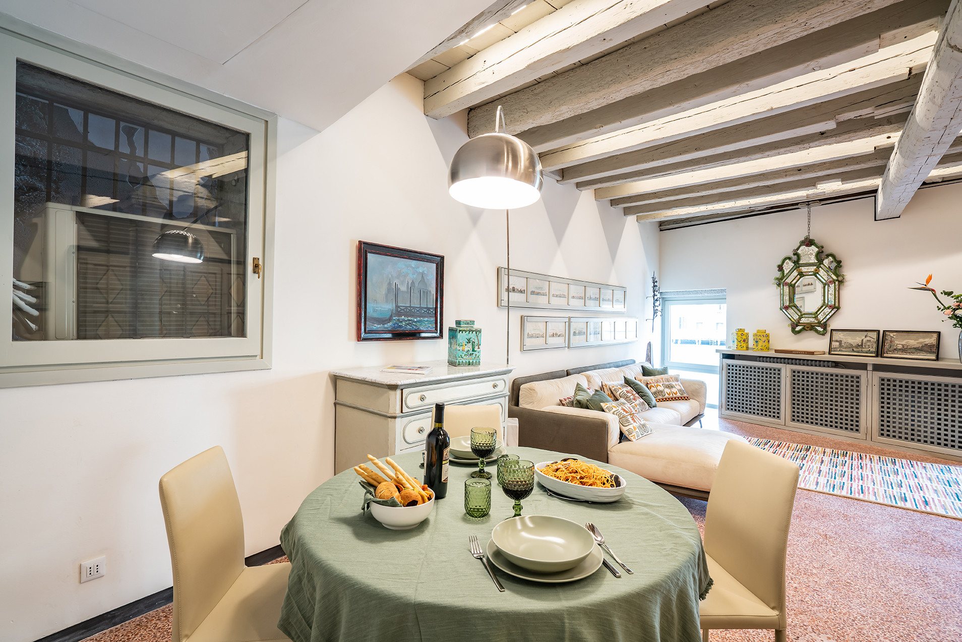 Mit Platz für 4 Personen in einer ruhigen und etwas versteckten Umgebung befindet sich die elegante Wohnung Ca’ Grassi 3 in der obersten Etage, die über eine Treppe erreichbar ist.
