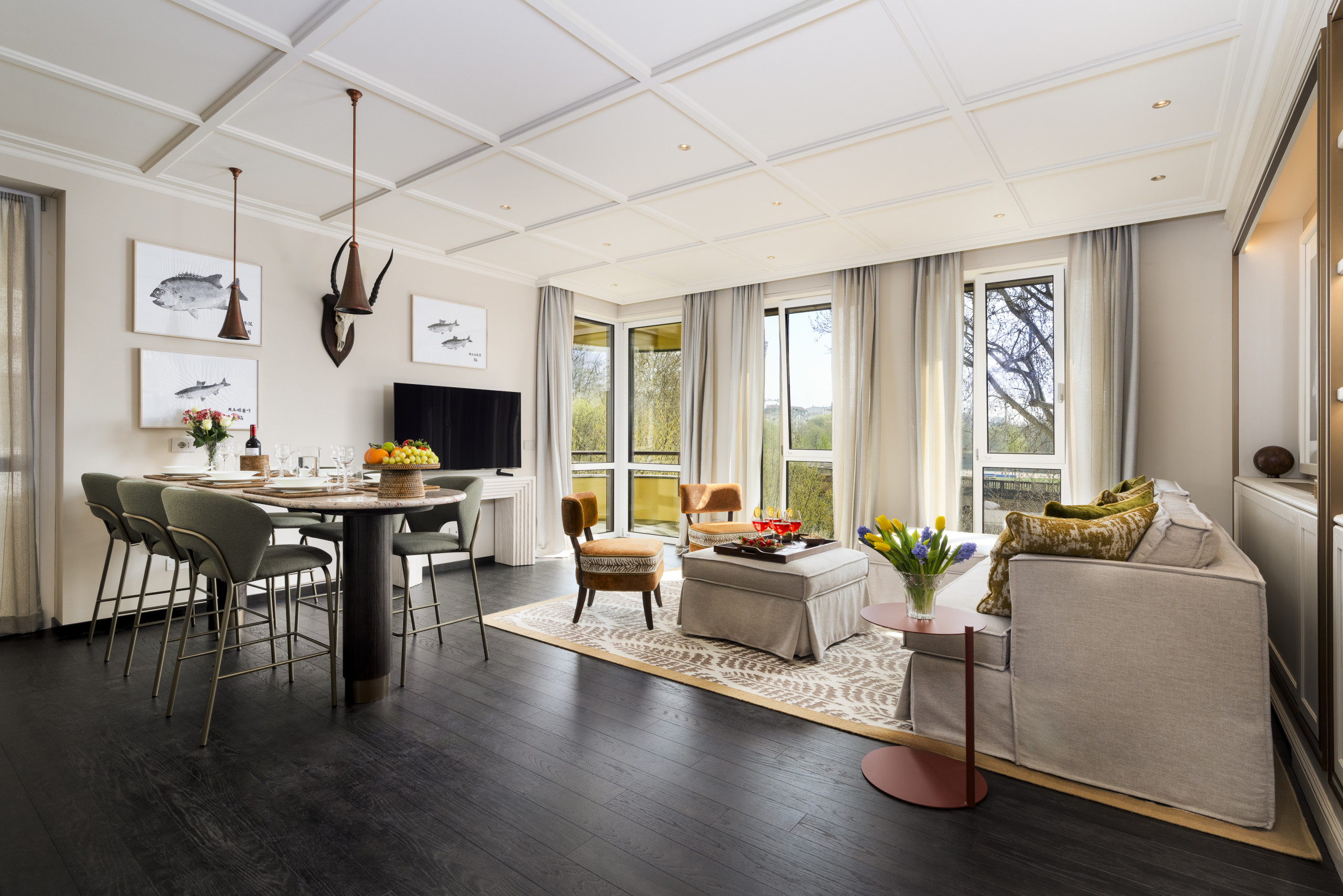 Designed with both style and functionality in mind, the apartment is set on the second floor of an elegant building with lift access and welcomes guests into beautifully curated interiors.