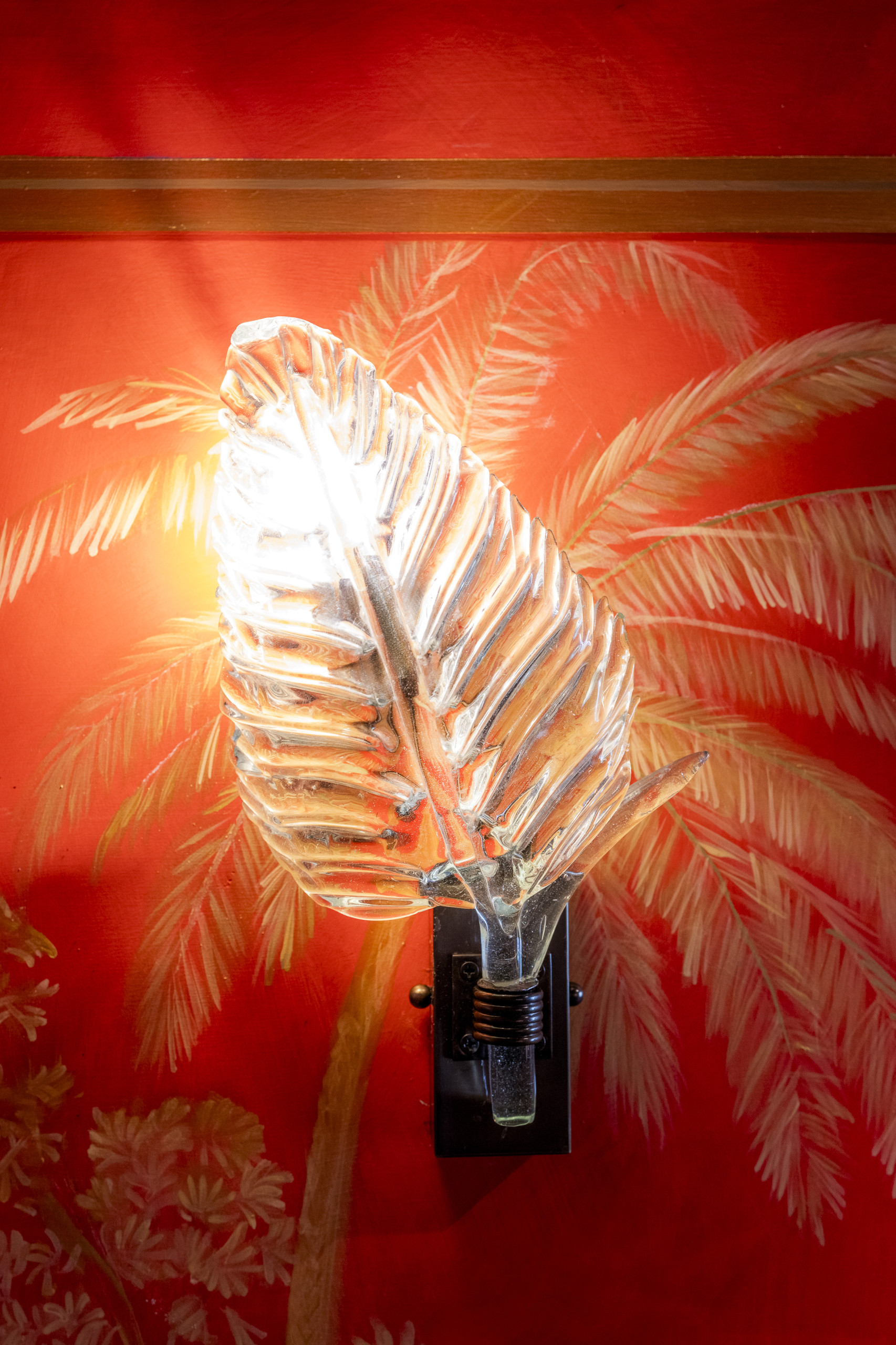 A private doorway into a dramatically embellished entrance hallway adorned from top-to-toe in hand-painted floral chinoiserie on gold leaf and featuring white-painted timbers overhead lit by Seguso vetri d’arte light sconces from the 60s – a true feat of Italian artistry and a ‘gasp aloud’ intro to the enchantment that lies ahead!
