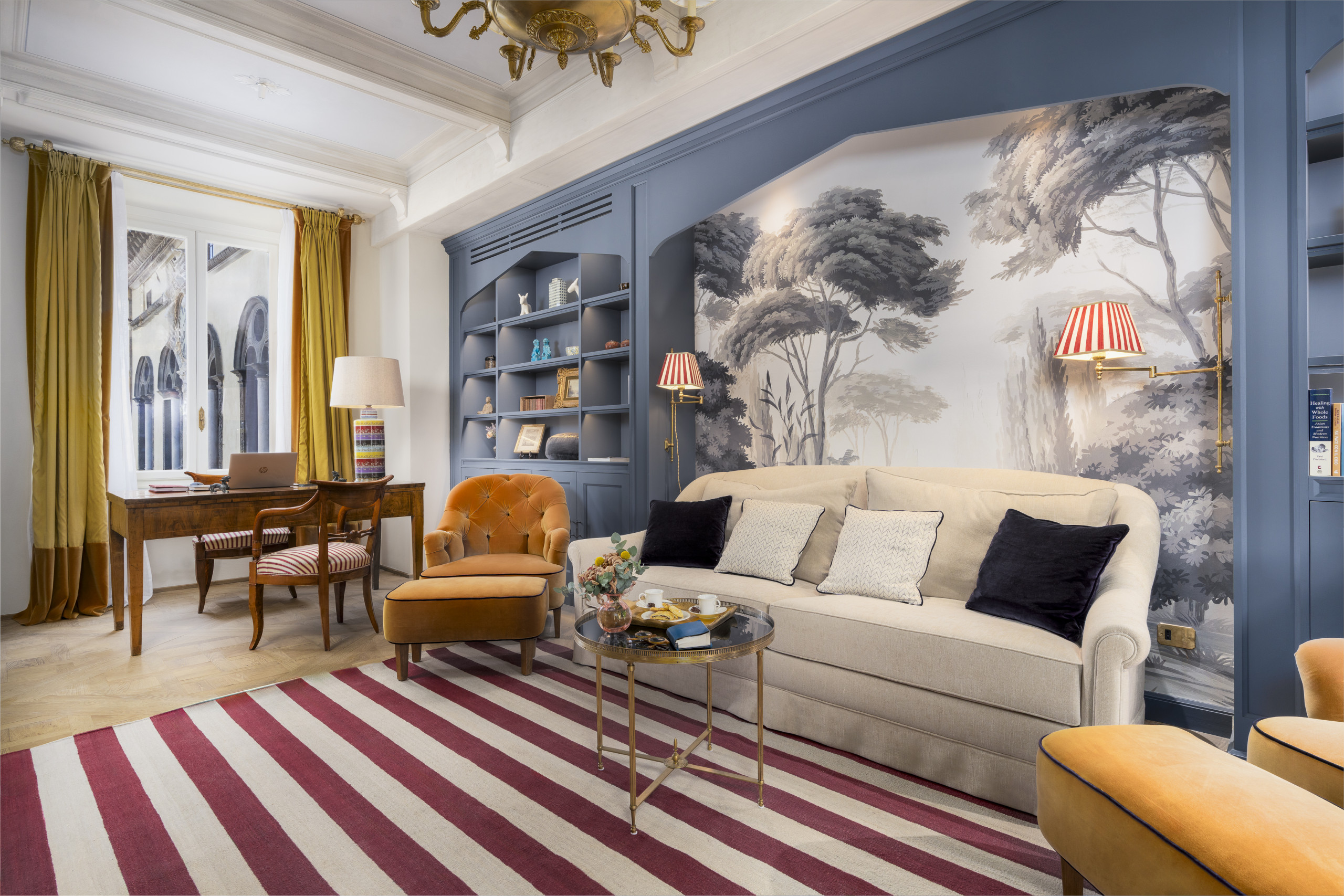 A fabulously elegant study space / TV room-snug facing the Renaissance Palazzo Pretorio to the fore – dressed with Italian flourish, incredibly cosy yet grand in style, and perfect for some snoozy ‘telly time’ at the very end of a blissful day