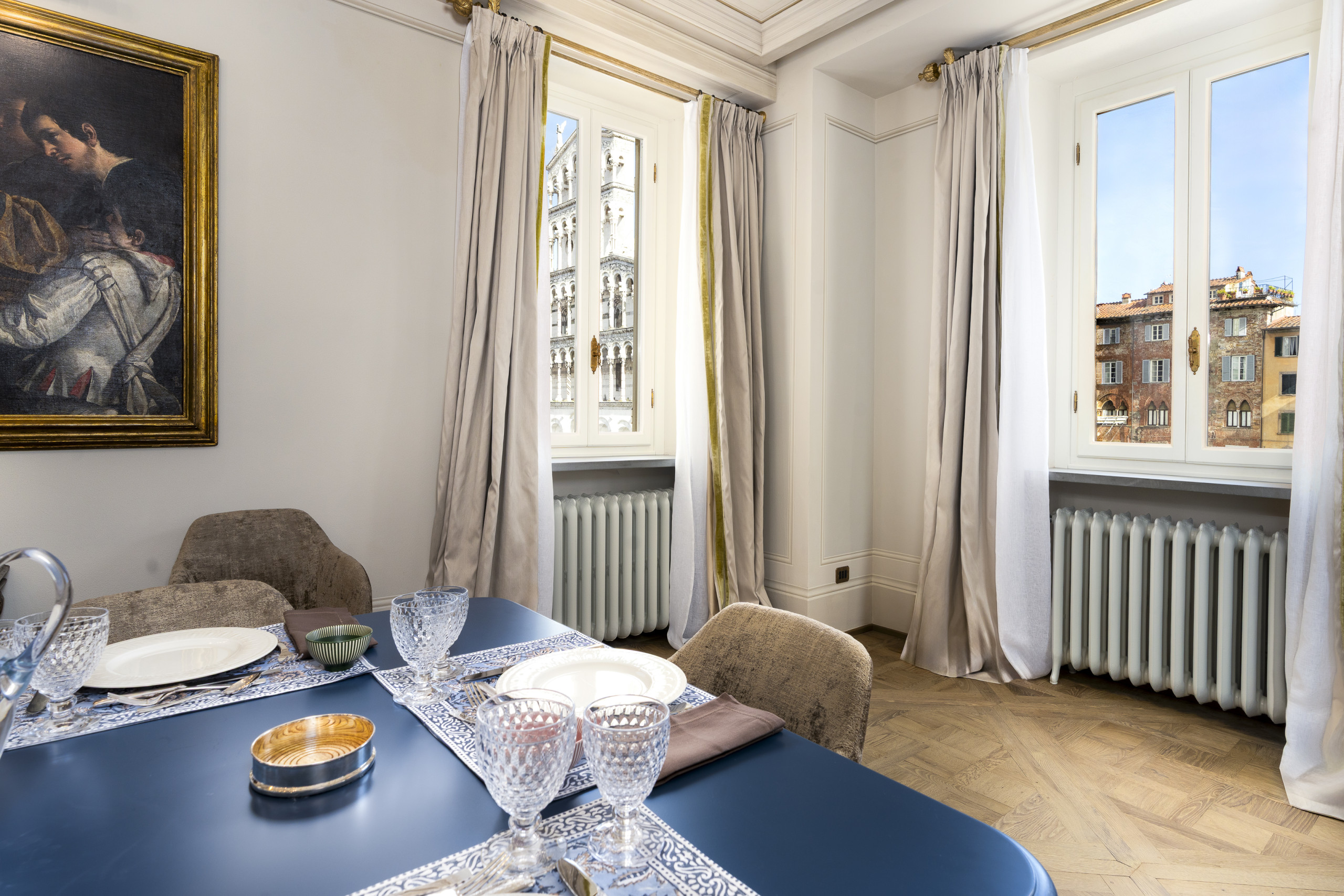 Gazing dreamily out from its shuttered windows onto Piazza San Michele** ‘within the walls’ of the gorgeous medieval city of Lucca, sits this gently reawakened patrician property waiting to welcome you with open arms within a palazzo harking all the way back to the 1200s.