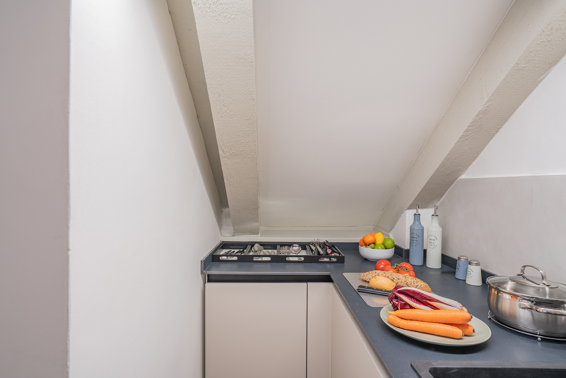 Perfectly suited for two guests, the apartment features a serene double bedroom, thoughtfully furnished to ensure rest and relaxation after a day exploring the city’s labyrinthine streets. A separate kitchenette provides a practical and well-organised space for preparing light meals, enhancing the convenience of this charming hideaway.