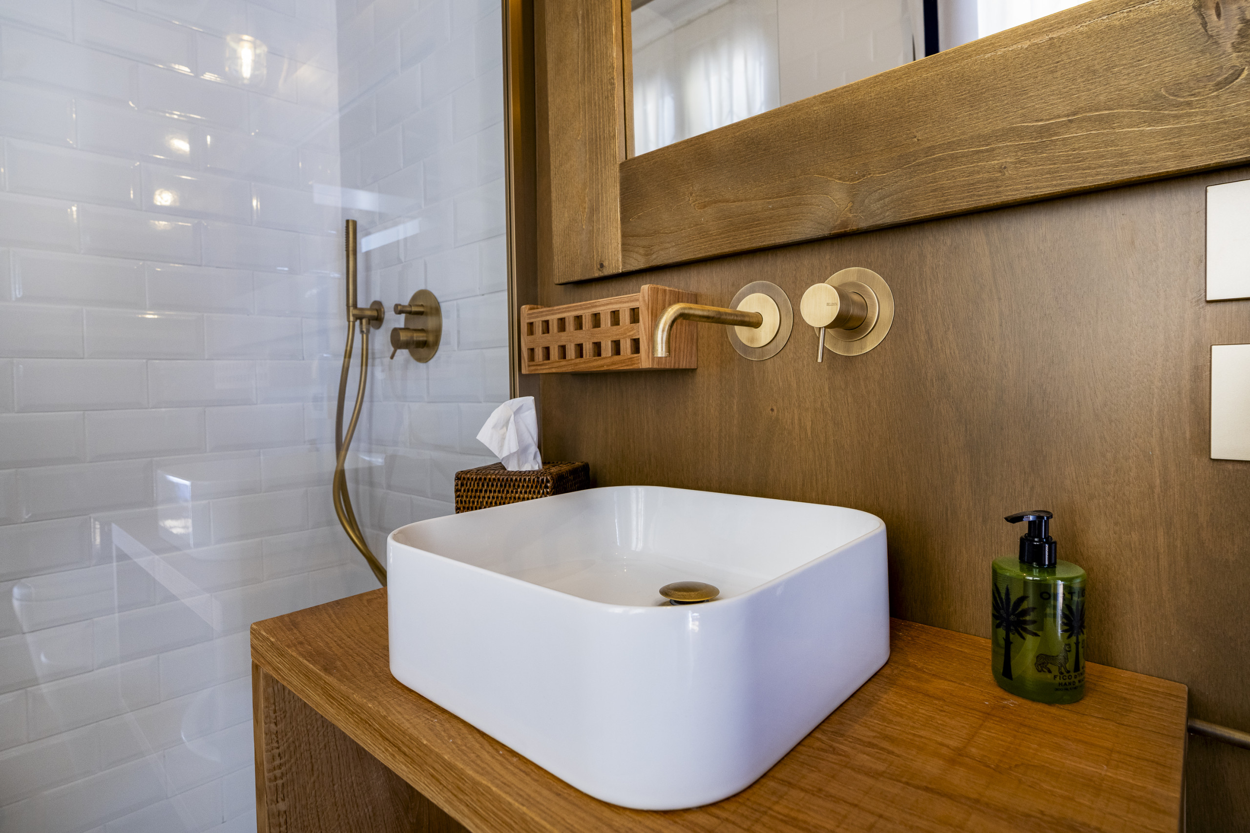 And completing Ca’ Mainella’s much-adored accommodation (read its reviews!) a 2nd bathroom with ‘tapestry’ mosaic and bathtub with shower over